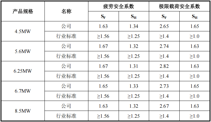 德力佳生产的风电主齿轮箱的零部件设计安全系数高于风电齿轮箱行业设计标准(注:SF表示齿根弯曲强度安全系数,SH表示齿面接触强度安全系数,安全系数越大表示设计越安全。)